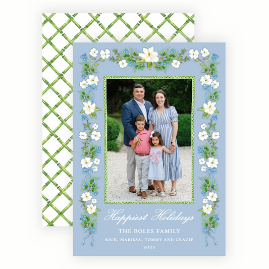 Christmas Photo Card - Holiday Blossoms, Blue - Portrait