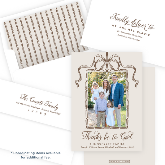 Christmas Photo Card - Bamboo Bow Frame, Chocolate