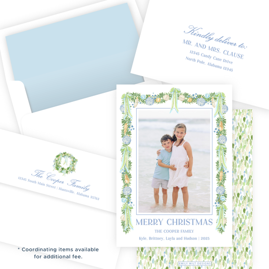 Christmas Photo Card - Blue Garland (Landscape)