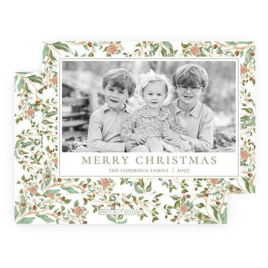 Christmas Photo Card - Chintz Elegance, Green (Portrait)
