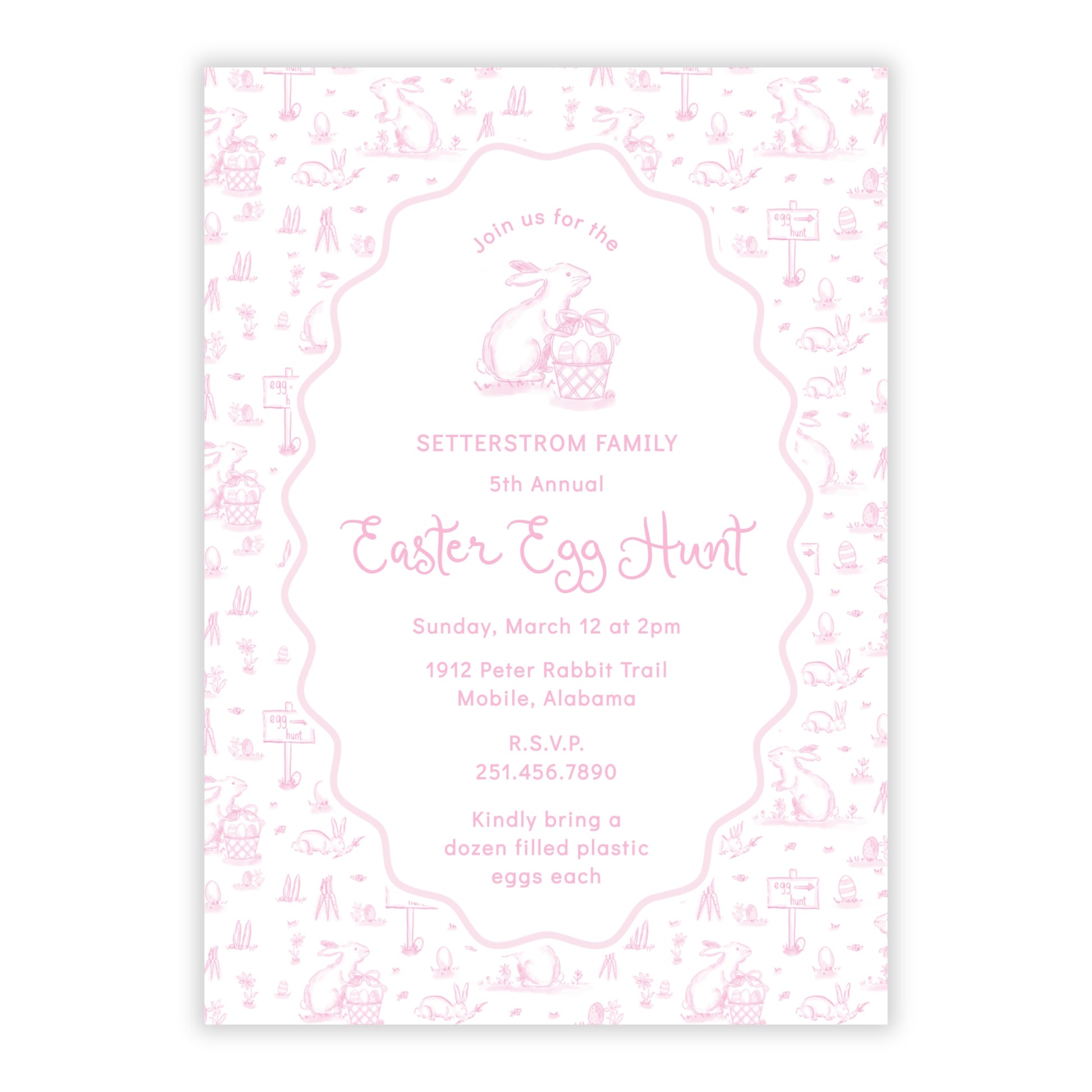 Easter Toile Egg Hunt Invitation, Pink