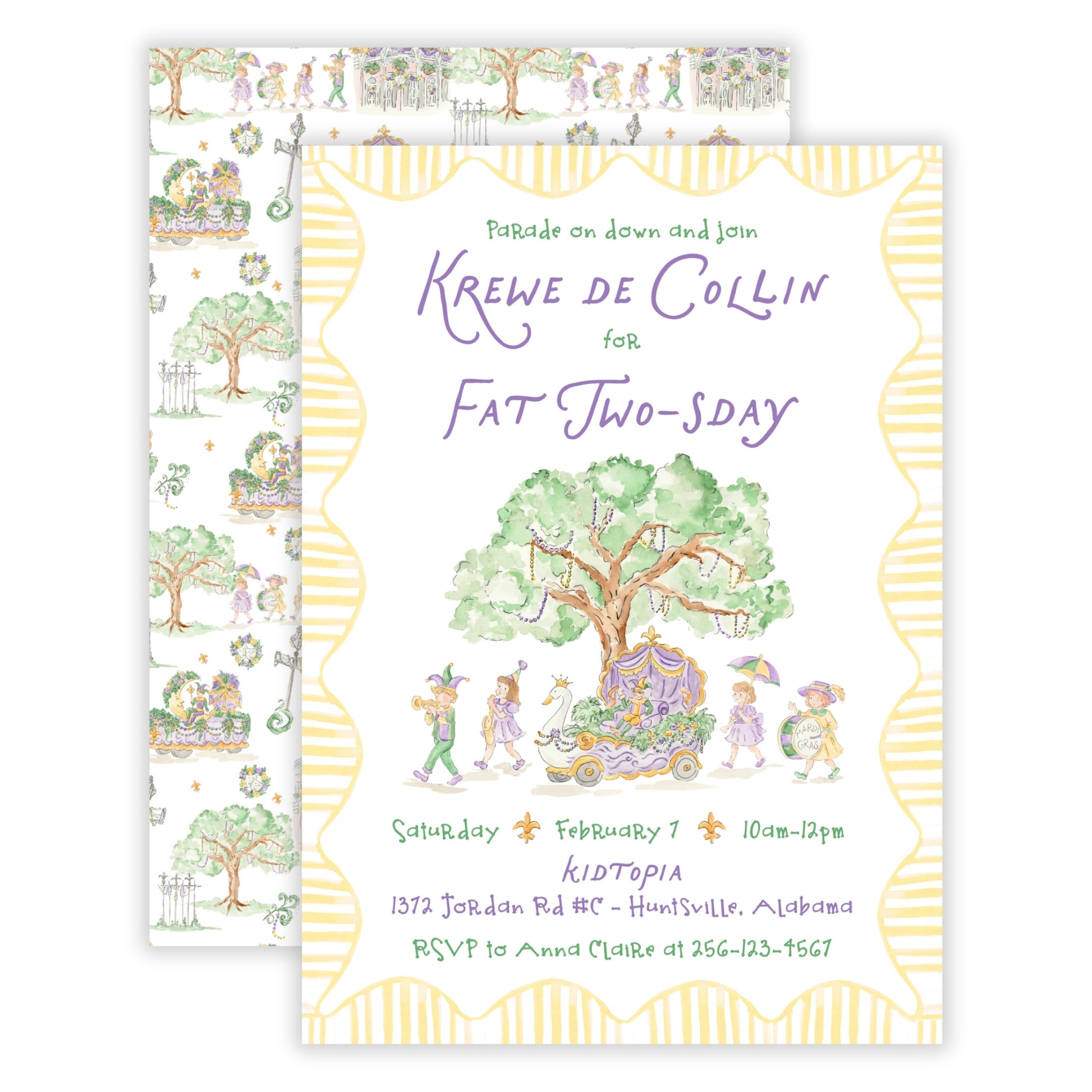 Fat TWO’sday Mardi Gras Birthday Invitations